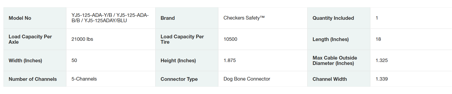 Yellow Jacket® 5-channel ADA cable protectors have built-in ADA accessibility ramps to provide a safe crossing for vehicle and pedestrian traffic while protecting valuable electrical cables and hose lines. Because the ramps are built-in, there is no need for separate connectors.