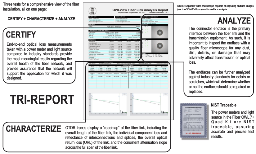 Fiber OWL 7+ Tier 2 Multimode Certification Test Kit w/ LC-LC Fiber Ring Bundle includes: |