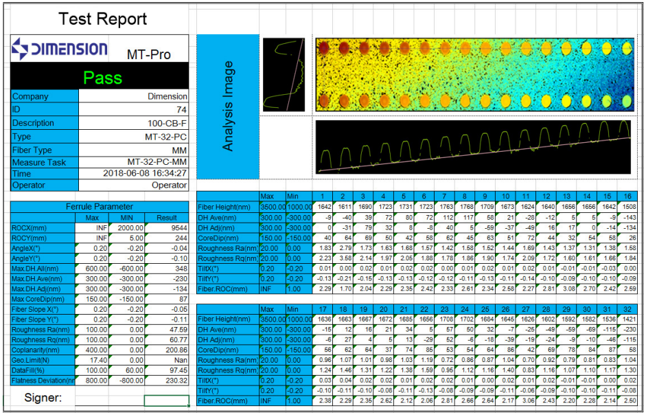 MT Pro is a dual light source interpreter that integrates single and multi-core elements Combining the optical system independently developed and patched by Dimension High Technology, the detection field of view is improved Multi core attachments non contact white light scanning measurement, and single core is developed based on the principle of red light coherence Capable of quickly and automatically detecting various indicator parameters of the 3D surface morphology of connectors with one click, and displaying and saving measurement results Equivalent with multiple high performance testing fixtures, widely used in laboratories and production manufacturing