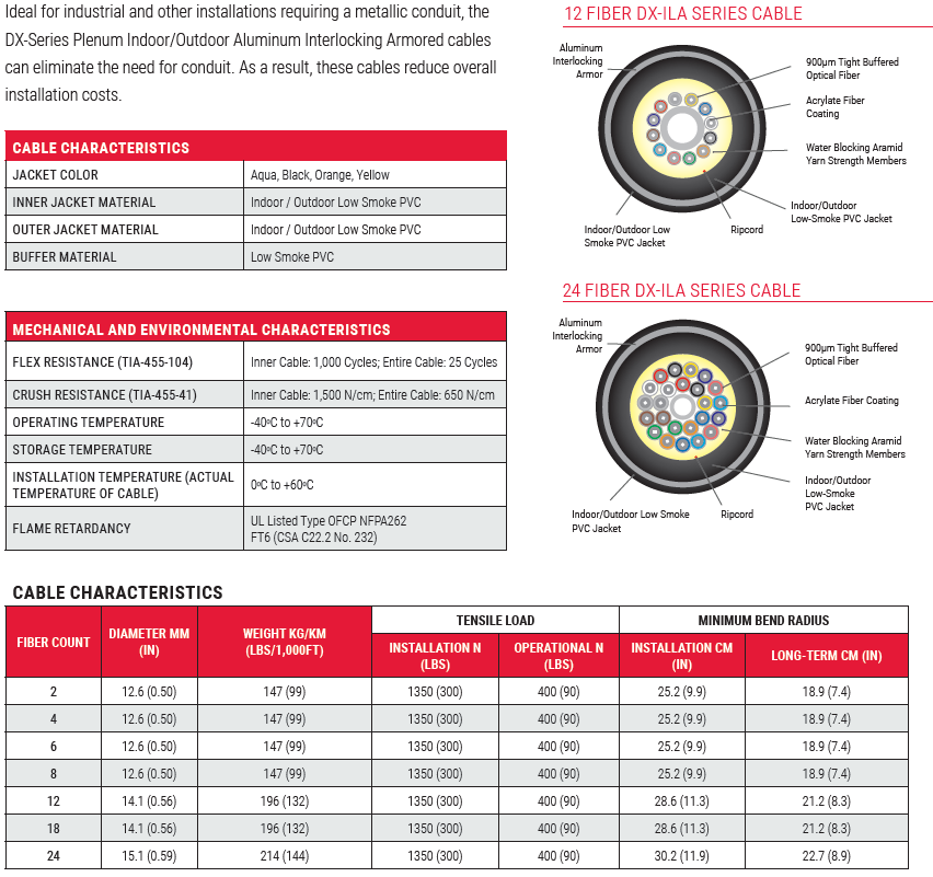 | Flame Retardancy | UL Listed Type OFCP (ANSI/NFPA 262) and FT6 (CSA C22.2 No. 232) |