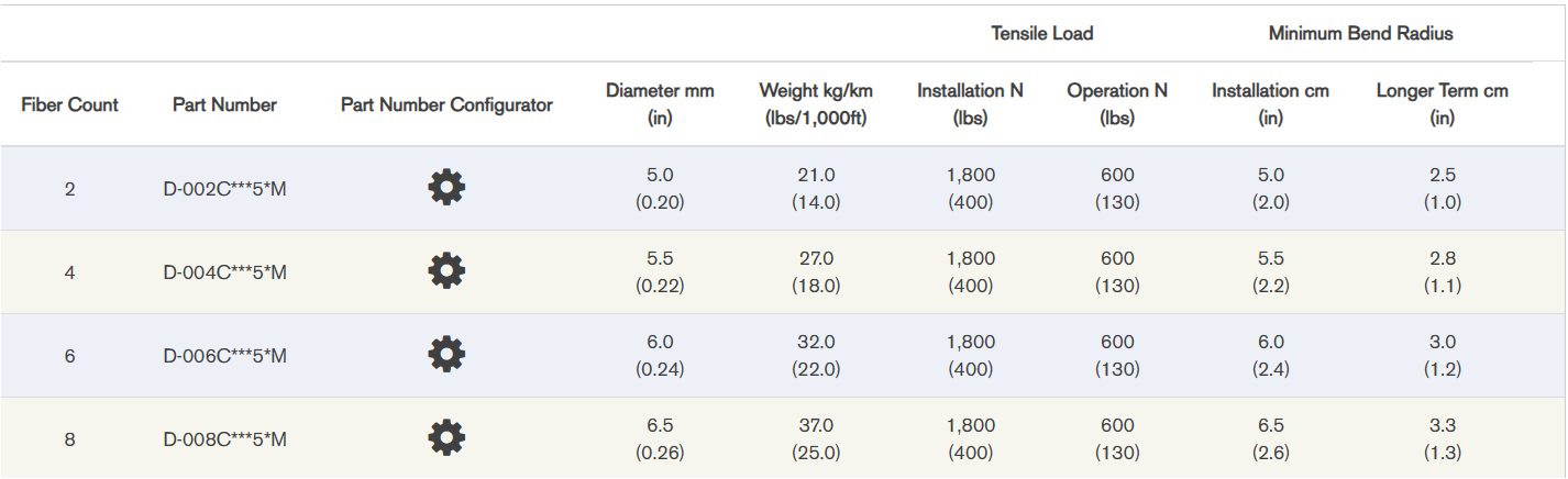- Extremely strong, lightweight, rugged, survivable tight-buffered cables designed for military tactical field use and commercial applications