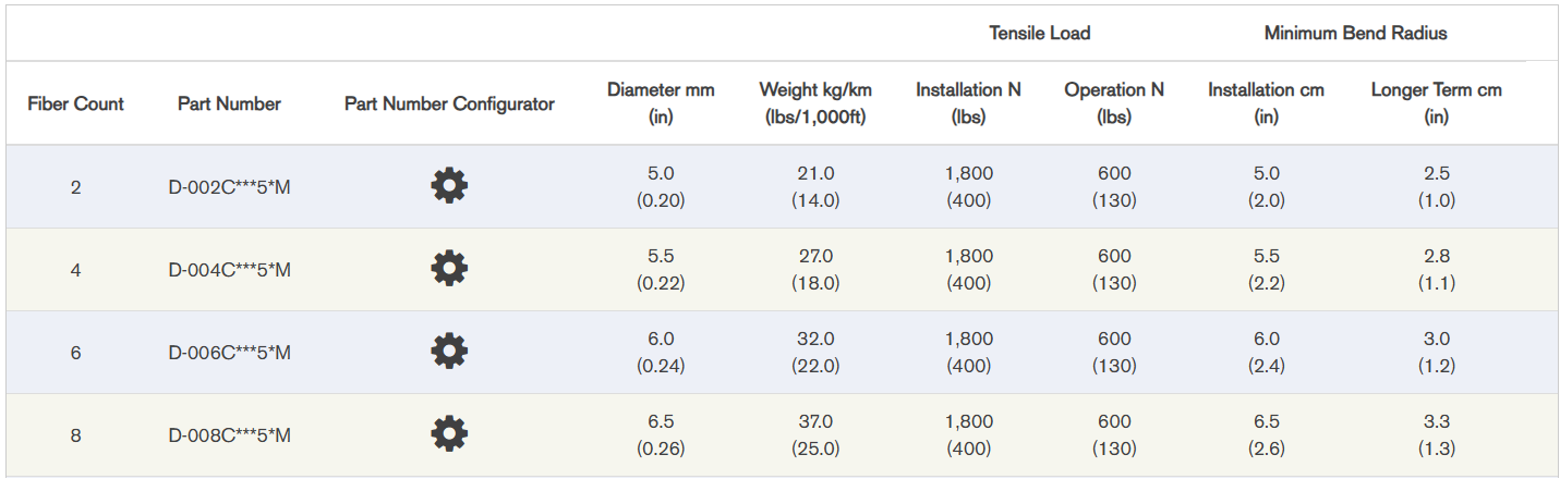- Extremely strong, lightweight, rugged, survivable tight-buffered cables designed for military tactical field use and commercial applications
