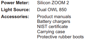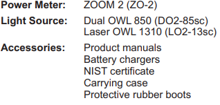 OWL Light Source. Whether is is a Dual OWL 850nm, Dual OWL 850/1300nm, Laser OWL 1310nm, Laser OWL 1310/1550nm, OWL manufacturers a complete line of high-quality and accurate, yet affordable, multimode LED fiber optic light sources. These light sources can be bundled with an OWL optical power meter for applications ranging from simple optical loss to full standards-based fiber link certification.